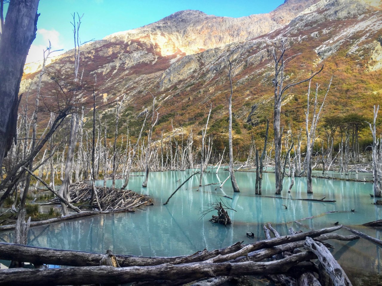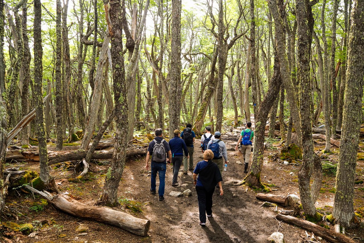 Durante las aproximadamente 2 horas de caminata hasta llegar a la laguna, exploraremos la flora y la fauna locales, y podremos observar el impacto de los castores, una especie exótica que ha modificado el paisaje. El esfuerzo de la travesía es ampliamente recompensado al llegar a la orilla .
